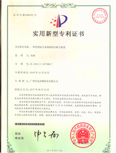 2019年11月6日,廣州中冠動物藥業有限公司(以下簡稱“中冠藥業”...